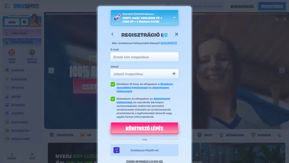 Üdvözlő bónusz 100% akár 200.000 HUF + 200 IP + 1 Bonus Crab