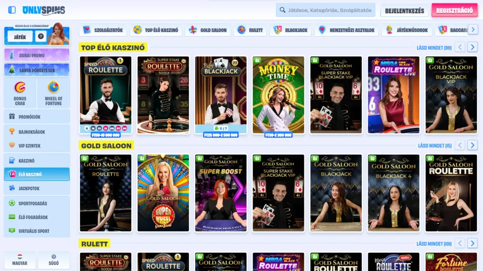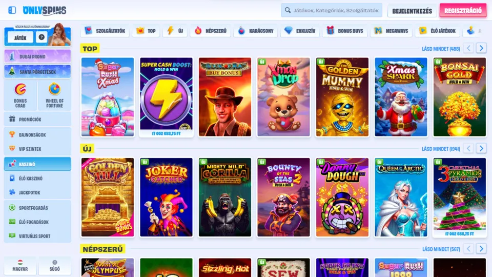 OnlySpins online kaszinó játékok