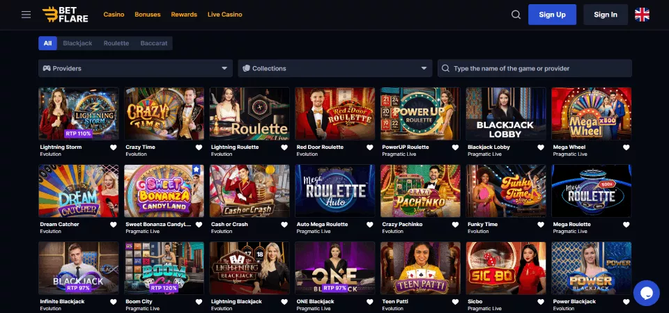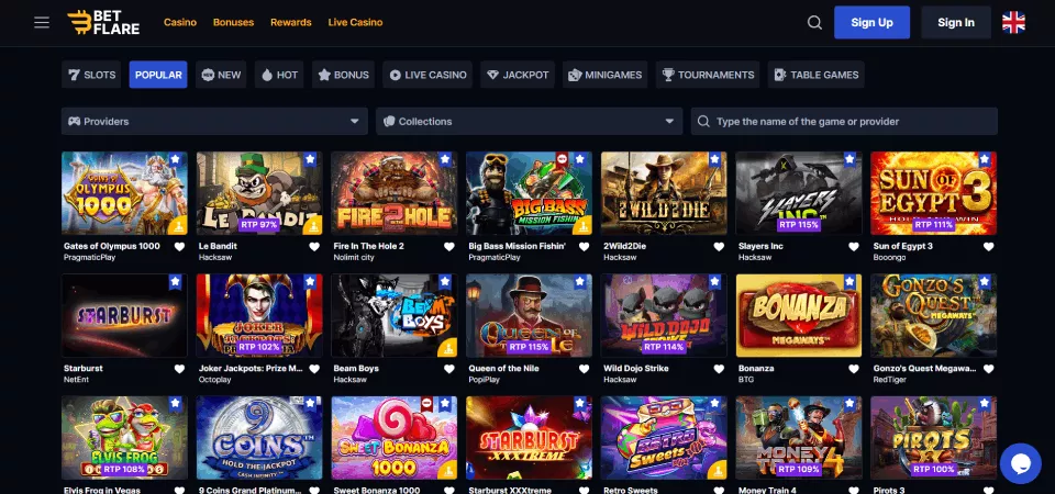 A Betflare kaszinó oldalán több ezer játék közül válogathat, melyeket a legjobb szoftverfejlesztők készítettek az alábbi fő kategóriákban: