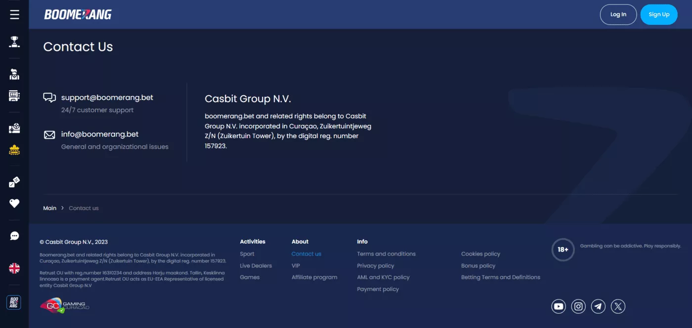 Boomerang bet Casino oldal teljesen megbízható és legális. Curacao adta ki a működési engedélyét, amely nemzetközi licenc, így Magyarországon is engedélyezett. Ez a licenc már önmagában azt jelenti, hogy a curacaoi hatóság bevizsgálta az operátort és mindent az előírásoknak megfelelőnek talált.