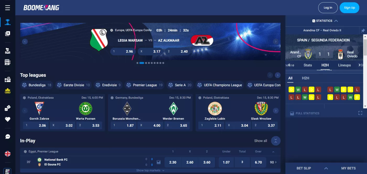 Ha már regisztrált, akkor a Boomerang bet Casino bejelentkezéshez kattintson a “bejelentkezés” gombra. Ezel be fog lépni a személyes fiókba. A Boomerang bet Casino mobil bejelentkezés a mobil verzió megnyitása után történik.