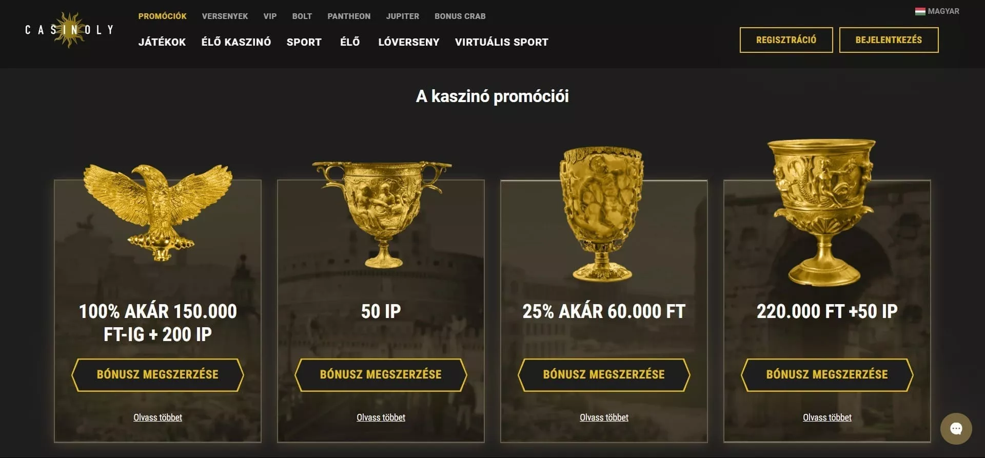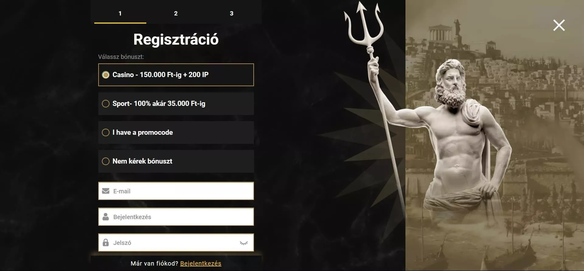 Válaszd ki az üdvözlő bónusz ajánlatot: Casino – 150.000 forintig + 200 IP / Sport – 100% akár 35.000 forintig / Promóciós kód / Nem kérek bónuszt. Fontos megemlíteni, hogy a Casinoly casino bonus rеgіsztráсіó során használható fel, és csak egyszeri alkalommal van erre lehetőséged.