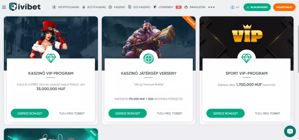 Ami a bónuszokat illeti, azokból több is van, a legvonzóbb az új játékosoknak szánt üdvözlőbónusz. De vannak heti cashback ajánlatok, befizetési ajánlatok. Mivel az IVIBet egyben sportfogadási oldal is, így arra vonatkozóan is találhatsz bónuszokat, mint mondjuk freebet vagy booster opciókat.