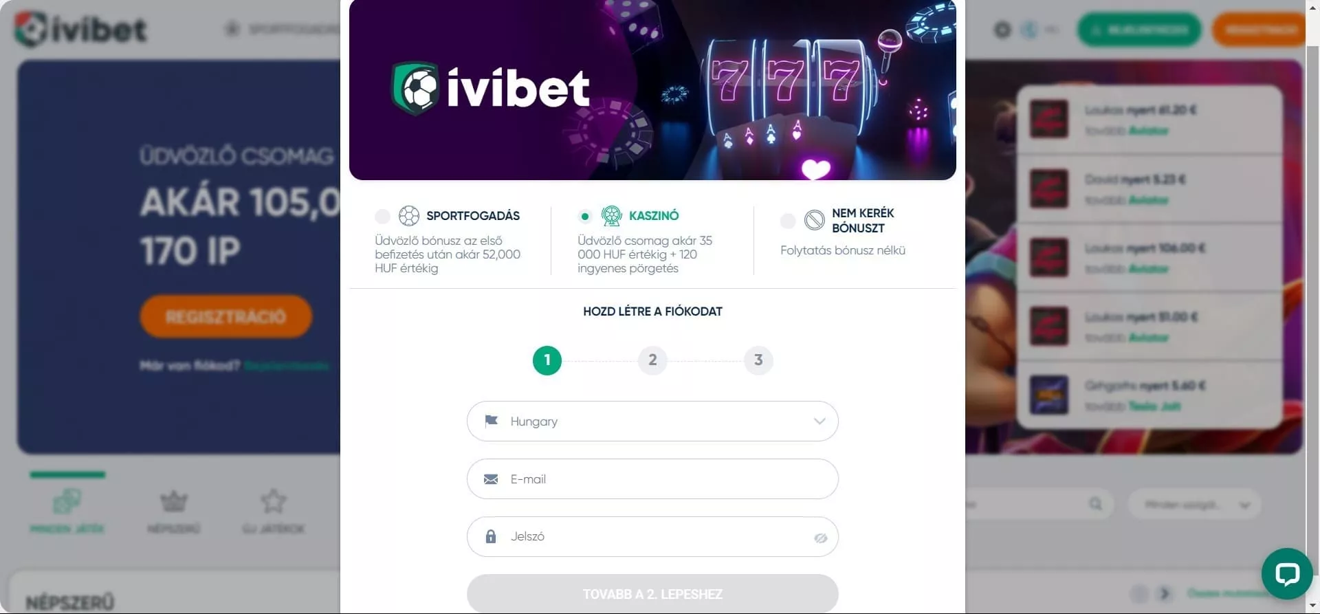 Ahhoz, hogy az IVIBet casino jövedelem forrásaként vagy csak szórakozási célként teljeskörűen használható legyen, be kell regisztrálni. Amíg ez nem történik meg, addig csak a demó játékokkal játszhatsz, így igazi nyereményeket sem érhetsz el. Ezen túl a csatlakozás egyben az IVIBET Casino bonus regisztráció is, mivel így jogosulttá válsz a különféle izgalmas és jövedelmező bónusz igénybevételére is. A regisztráció lépései: