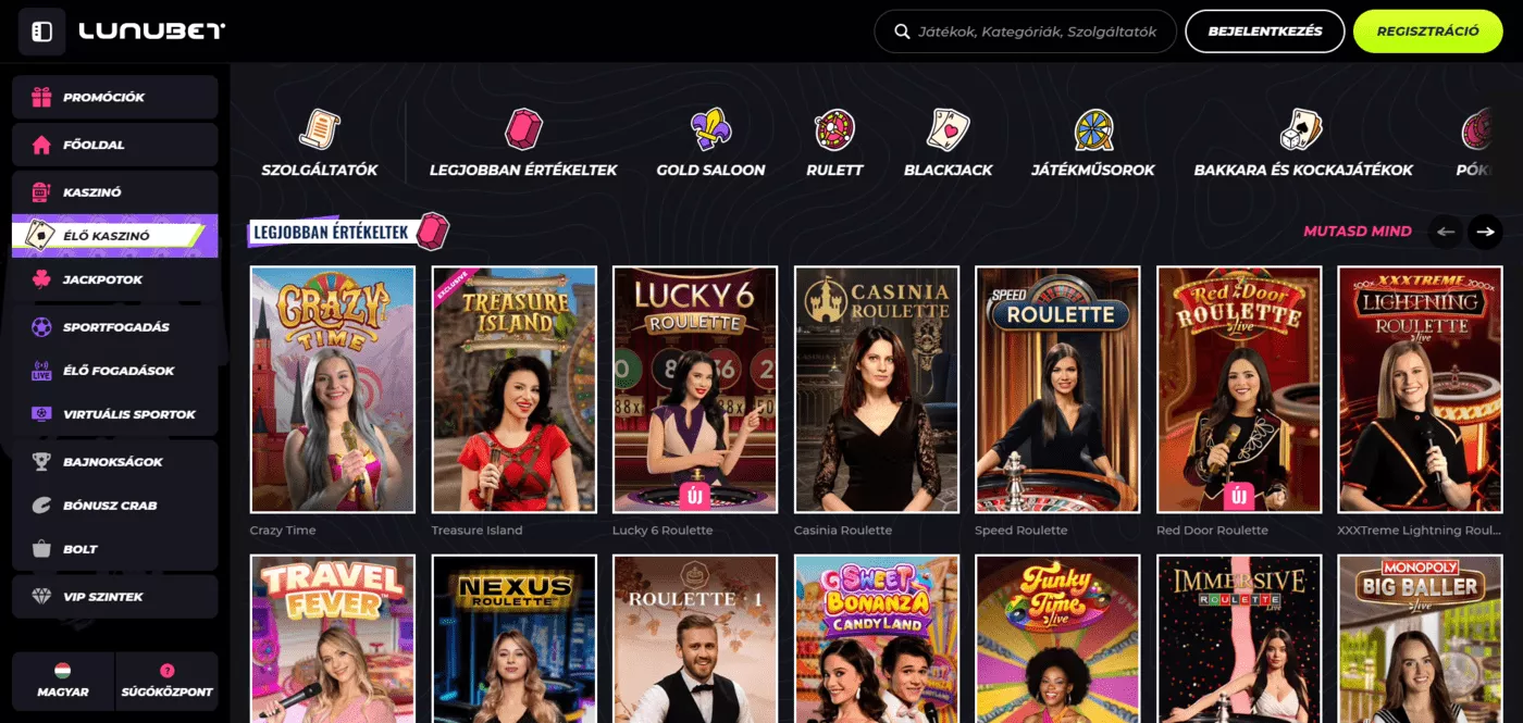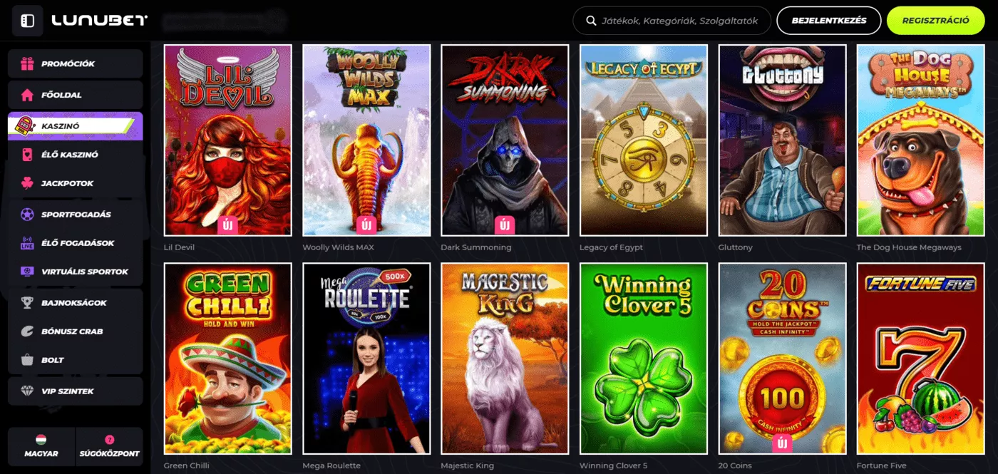 A LunuBet kaszinó játékok széles kínálatát nyújtja játékosainak. Az oldalon megtalálható kategóriák a következők: