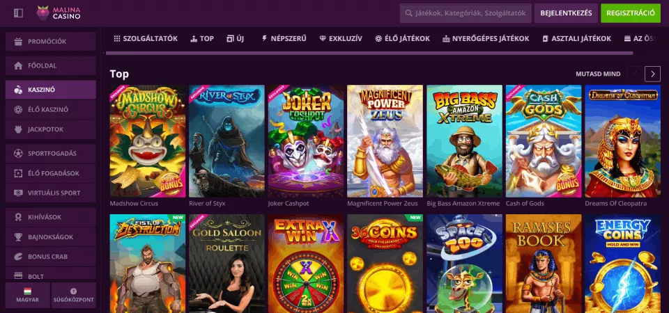 Malina Kaszinó Magyarország – Általános információk a felületről
