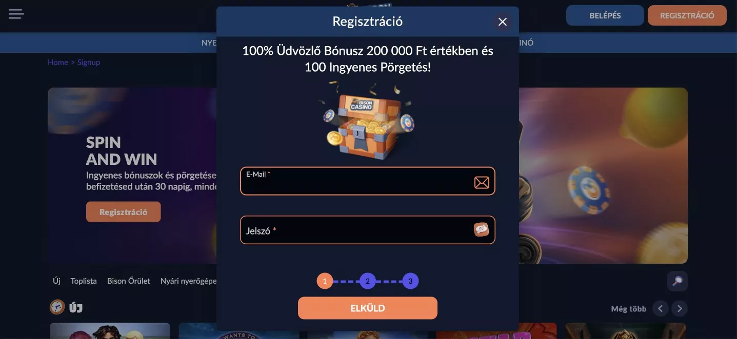 A Bison online kaszinónál a regisztráció egy egyszerű, csupán pár lépéses folyamat. Az alábbi lépésekben végig vezetünk téged ezen az eljáráson a legkönnyebb kezdés érdekében. Íme a Bison regisztráció lépései: