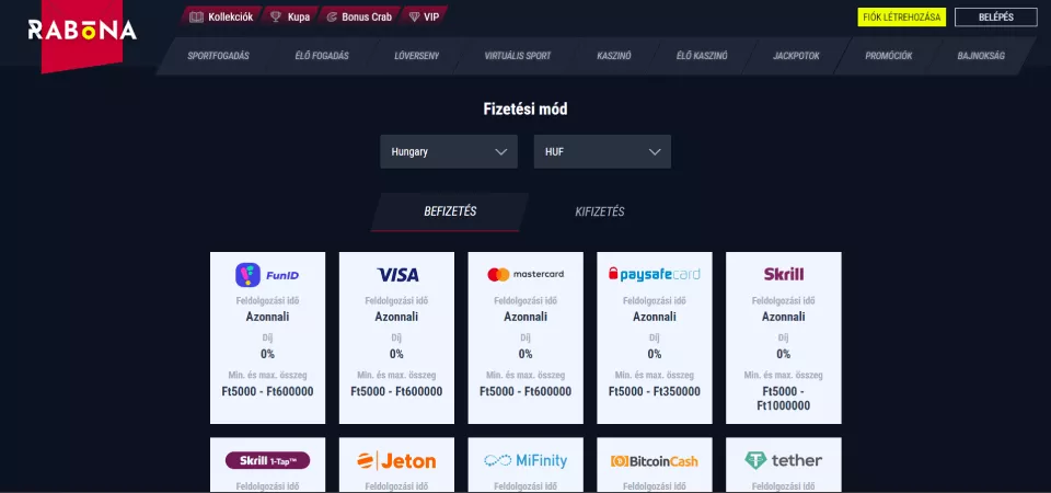 Rabona kaszinó fizetési módok Magyarországon – Mivel töltheted fel a számládat?