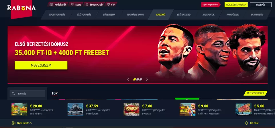 Népszerű választás a magyar játékosok körében a Rabona kaszinó, főleg azért is, mert változatos játékokat és izgalmas bónuszokat kínál. A 2019-ben alapított Rabona kaszinó online felülete csábító üdvözlőcsomagot, ingyenes pörgetéseket, reload bónuszokat és cashback ajánlatokat ad mindenkinek, aki érdeklődik.