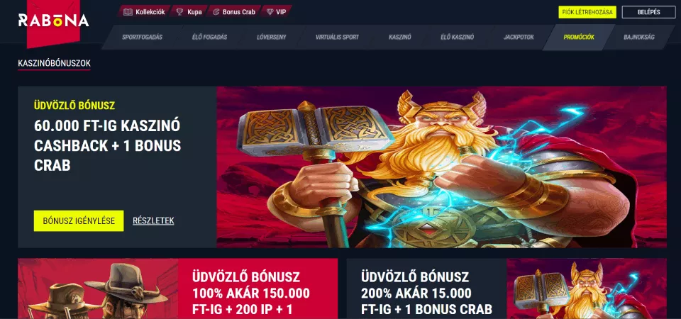 Rabona kaszinó promóciók és bónuszok 2026 – Mi vár rád?