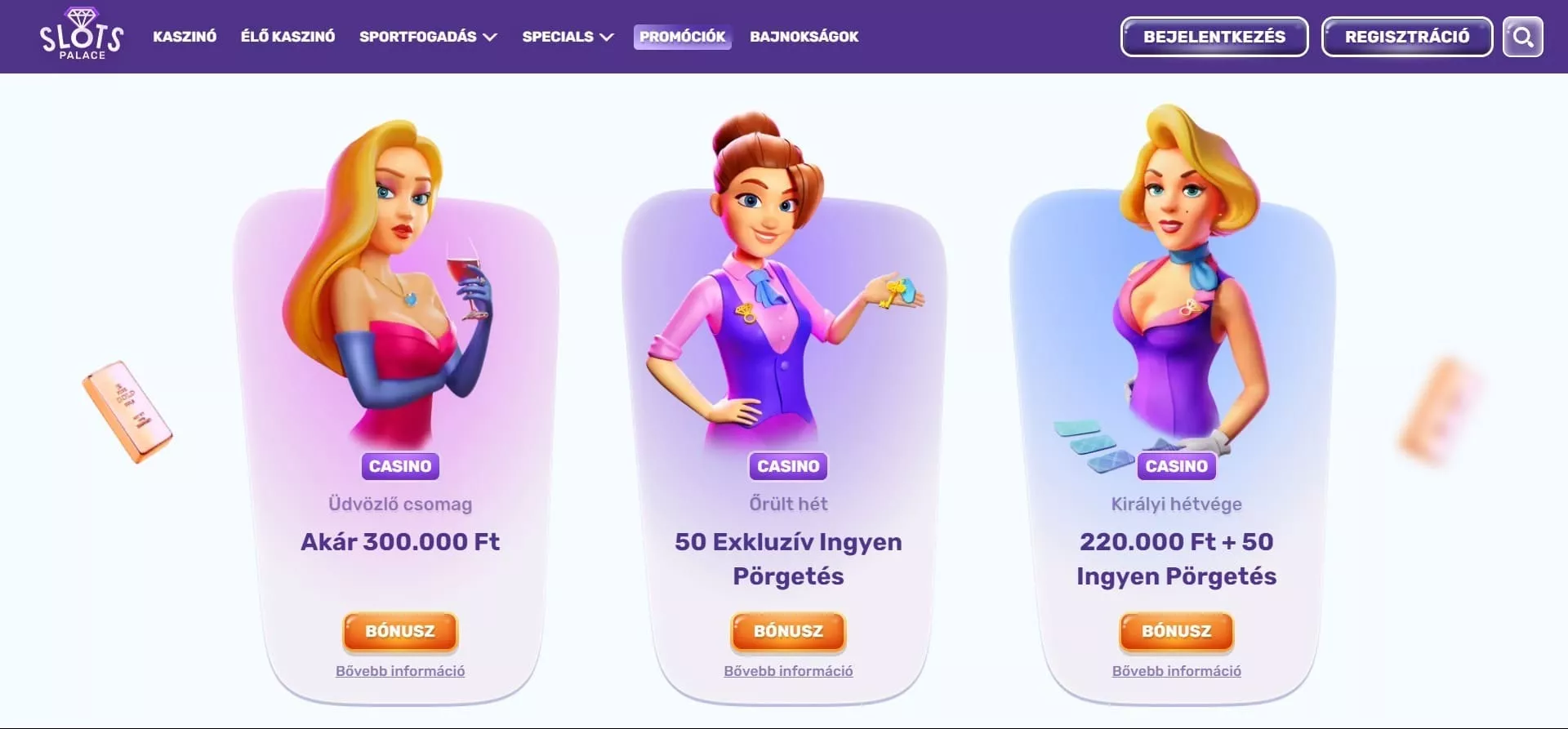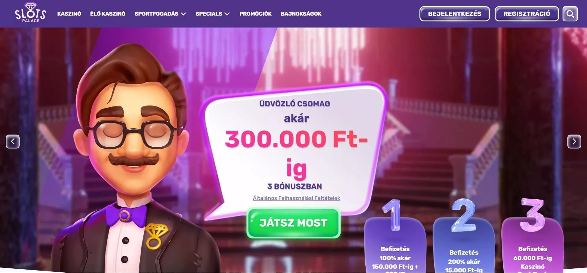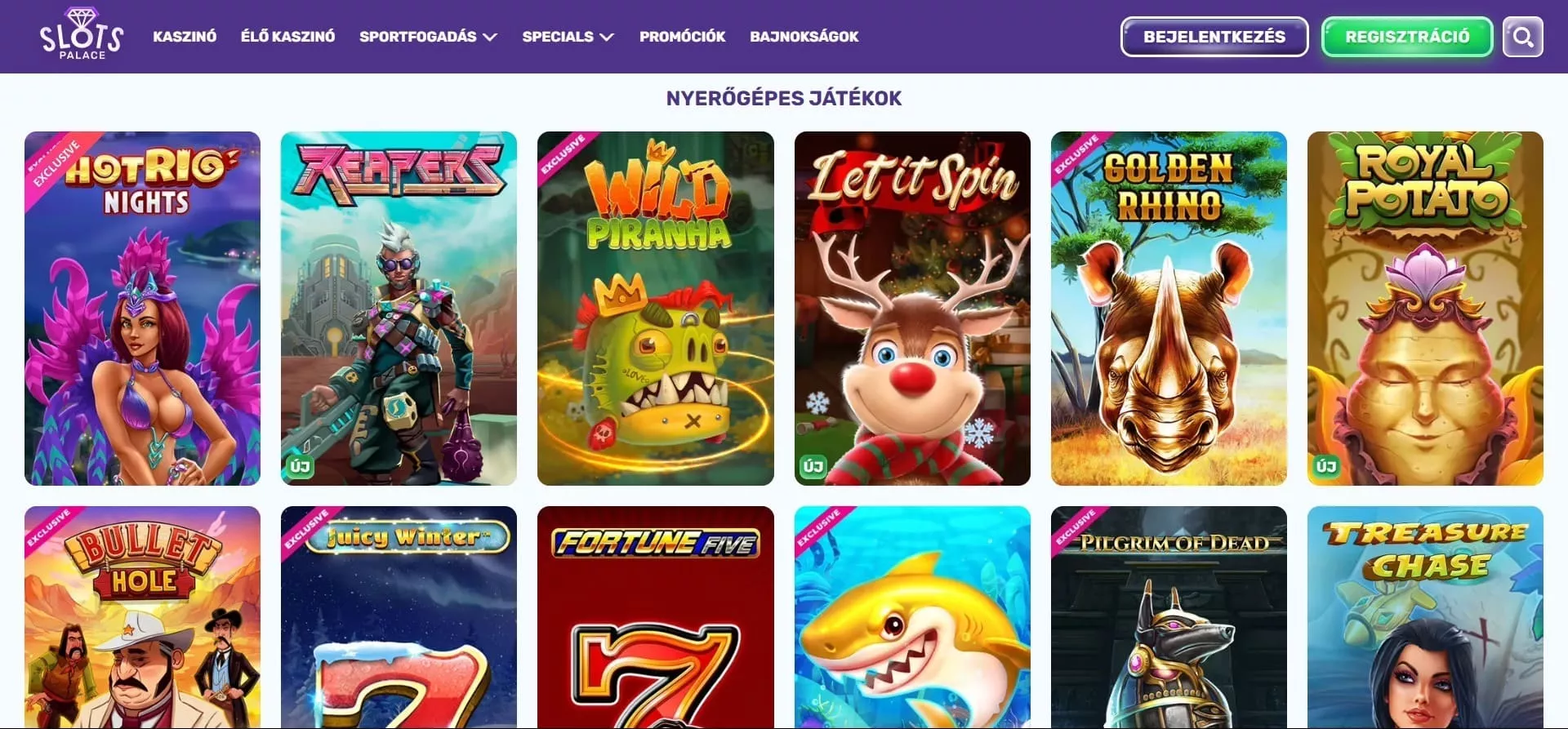 Az egyedi dizájnnal ellátott SlotsPalace online casino is egy a minőségi kaszinó oldalak közül. A SlotsPalace casino magyar platform, ahol több ezer játék található 34 szolgáltatótól, igényre szabott bónusz ajánlatok és biztonságos fizetési rendszerek várják régi, és új felhasználóikat. A SlotsPalace élő kaszinó játékokkal és VIP programmal is rendelkezik.