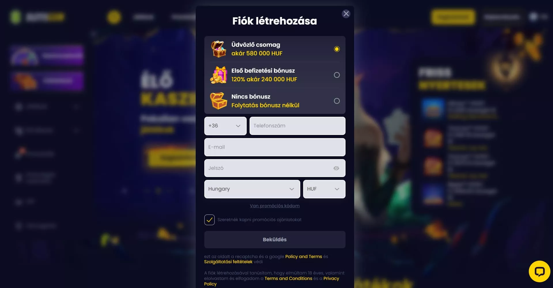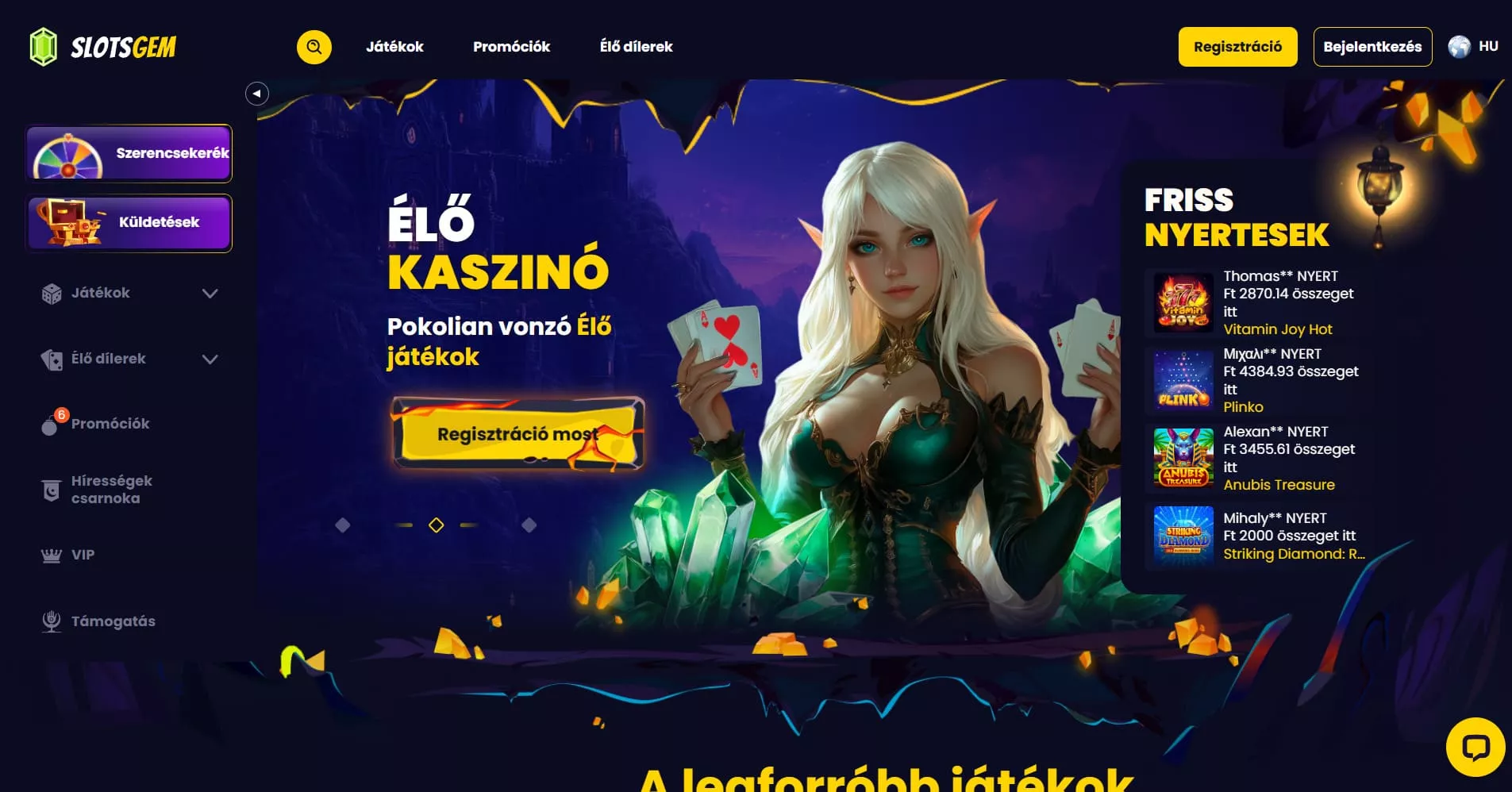 - 🎲 Élő kaszinó