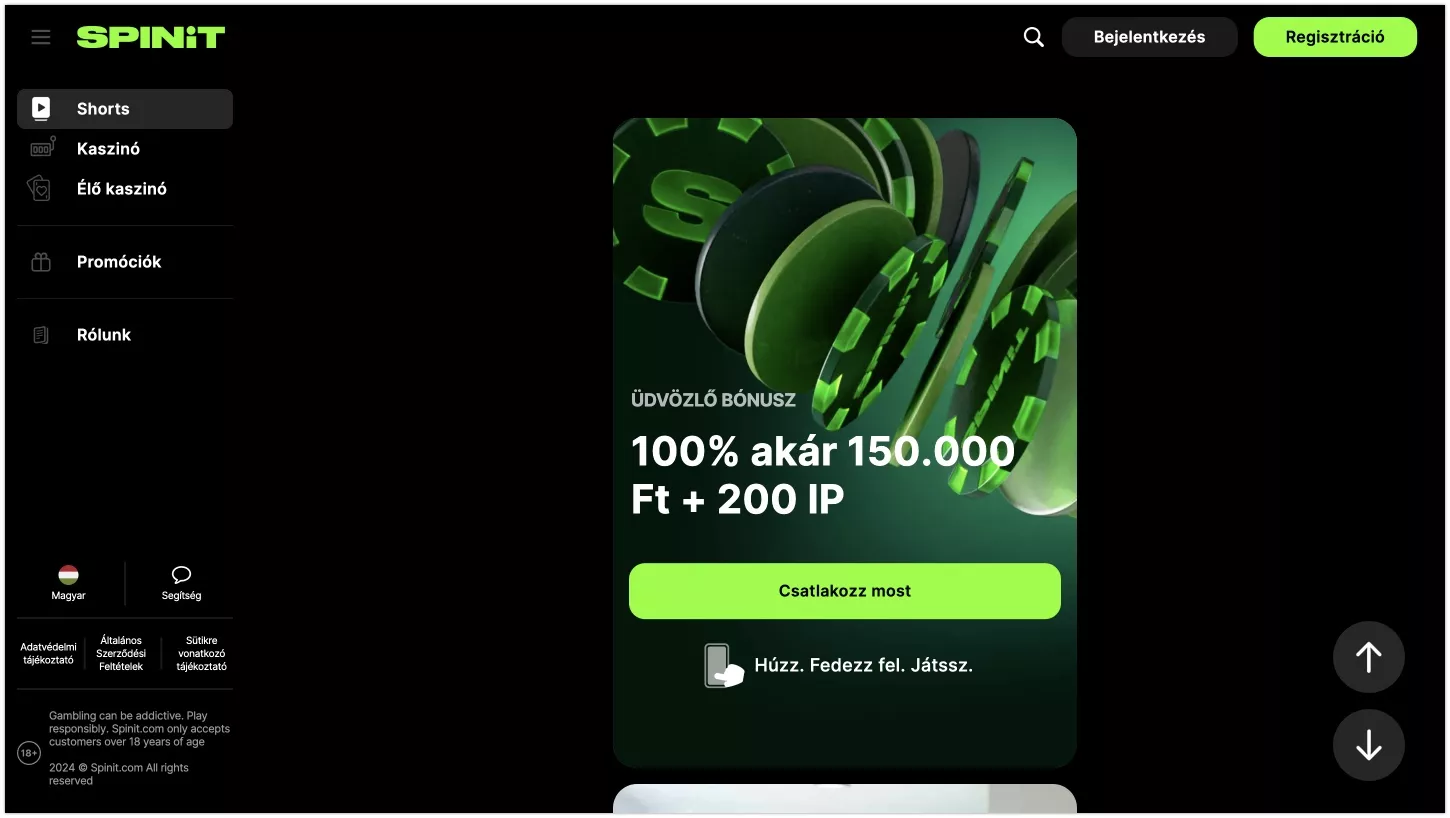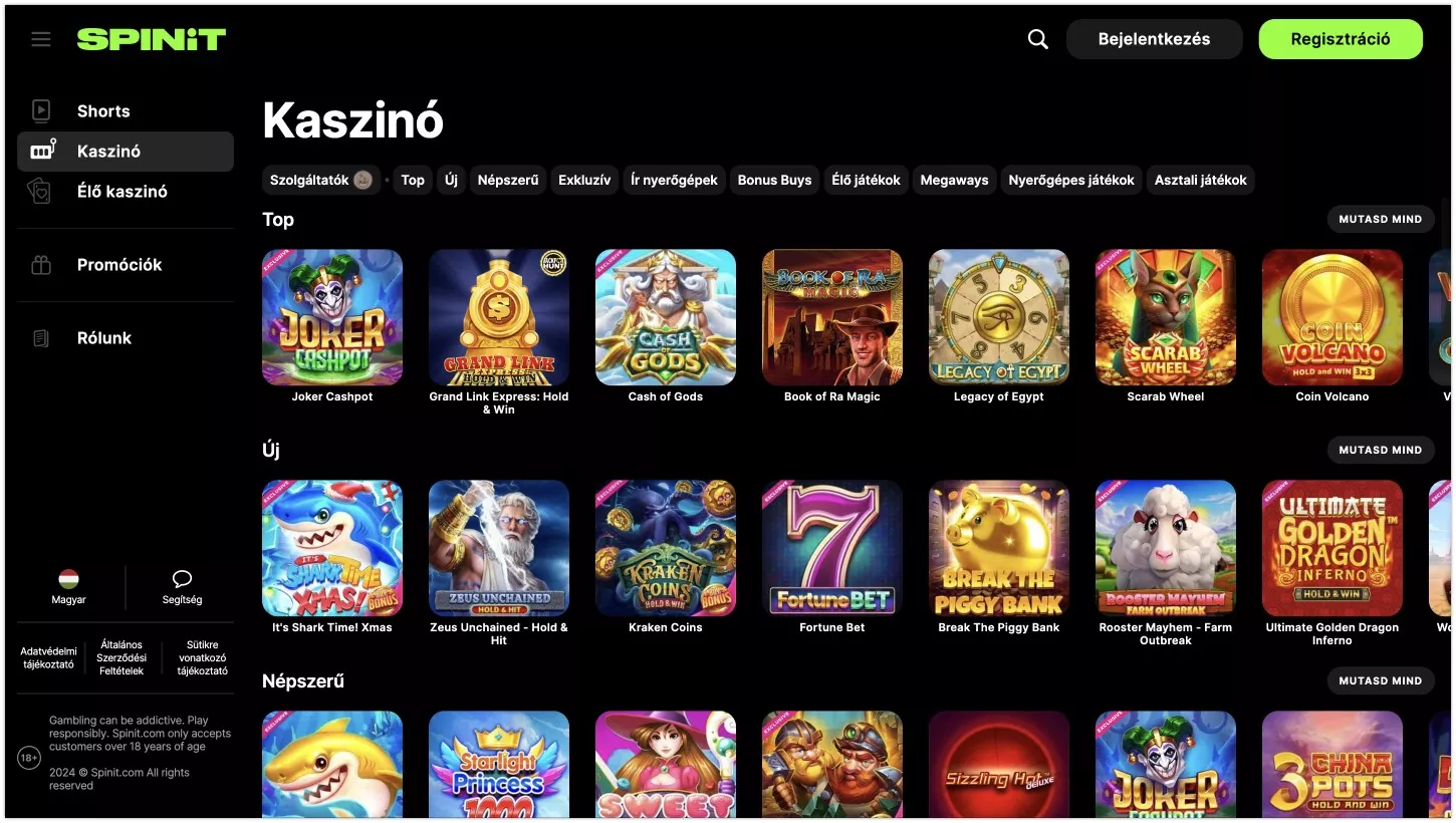 Ha kíváncsi vagy a szerencsejáték-ipar legújabb vívmányára, akkor jó helyen jársz. Ez az áttekintés a Spinit online kaszinóról Magyarországon 2026-ben a jövő szerencsejáték oldalát mutatja be: a Spinit ugyanis más, mint a többi kaszinó oldal.