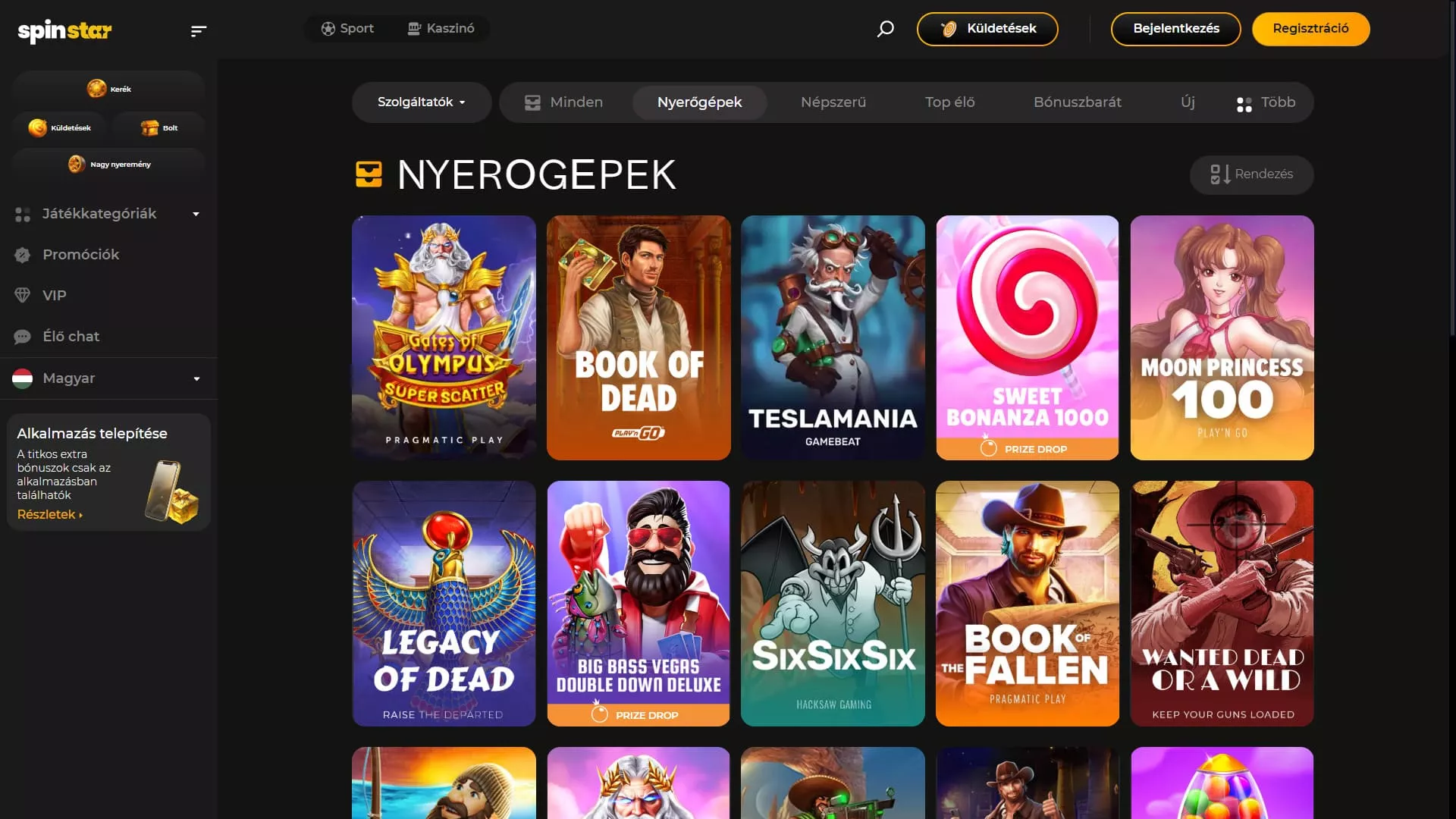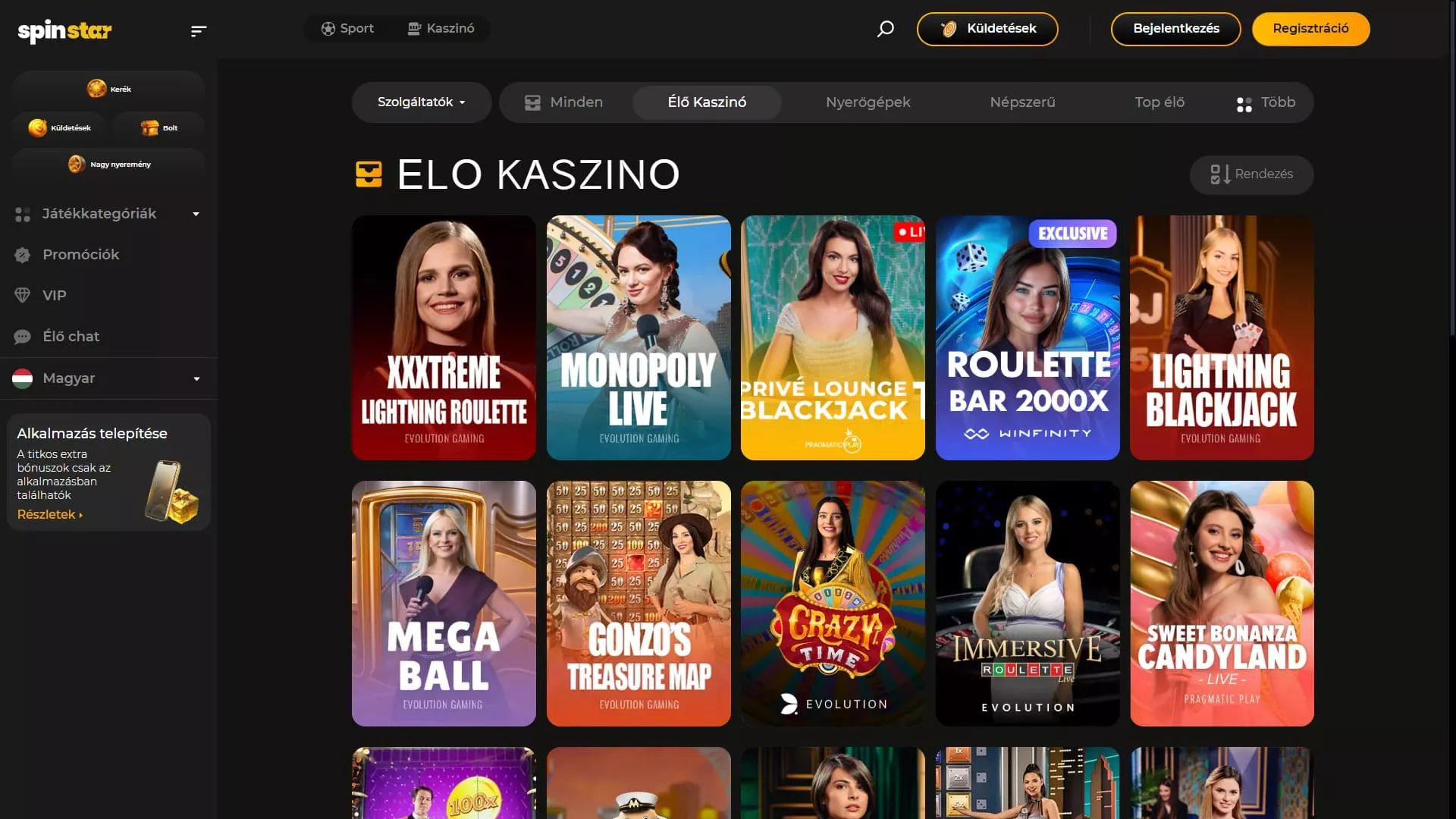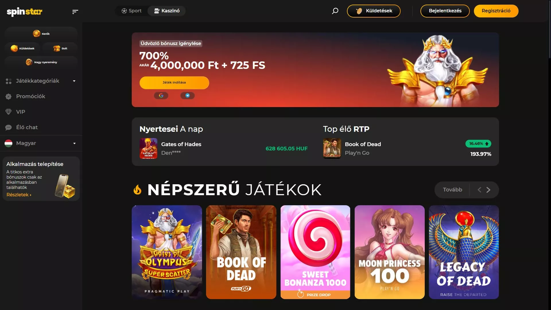 Spinstar online kaszinó játékok